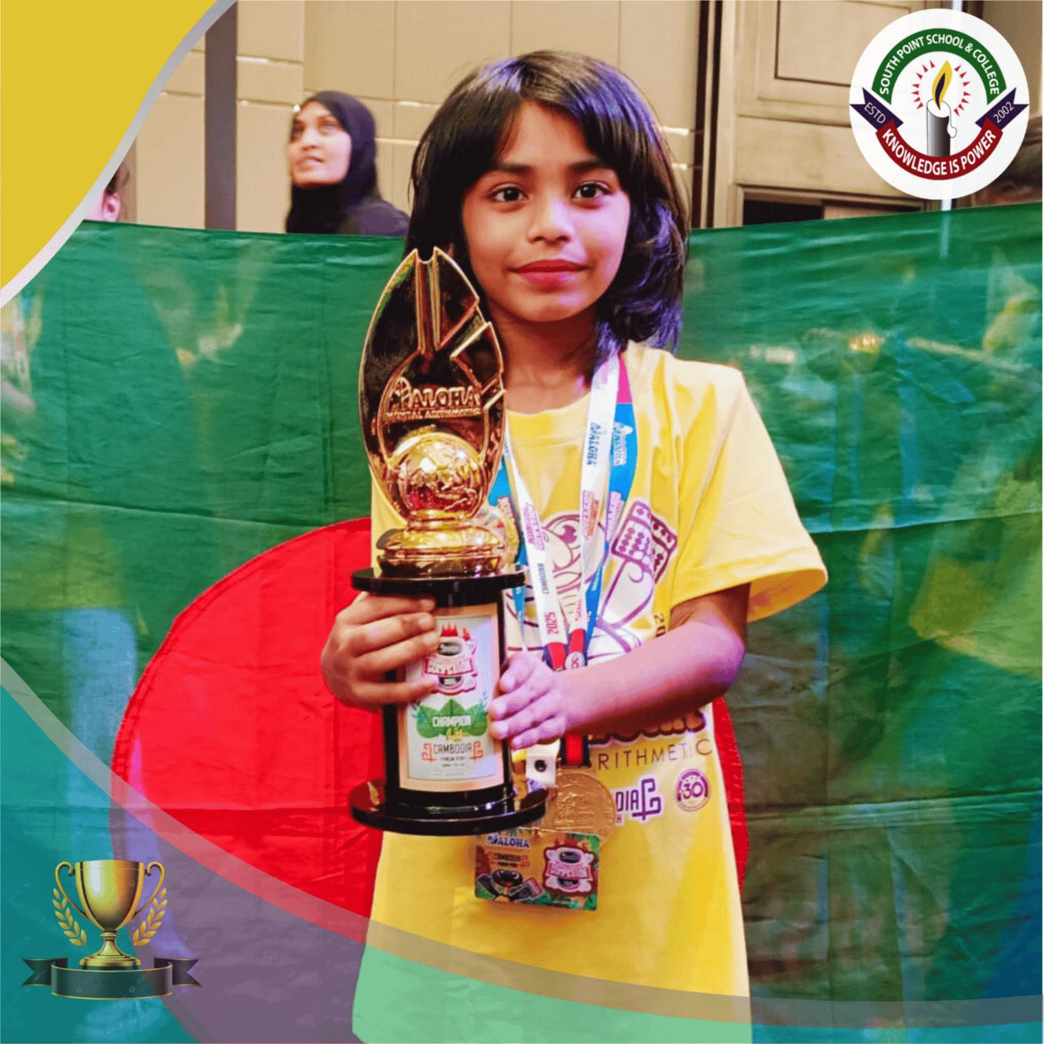 সাউথ পয়েন্ট স্কুল অ্যান্ড কলেজ, বারিধারা শাখা সবসময় শিক্ষার্থীদের মেধা, সৃজনশীলতা ও সাফল্যে গর্বিত। এরই ধারাবাহিকতায় আমাদের শিক্ষার্থী তানিজা মাহভিন আনেরা সম্প্রতি আন্তর্জাতিক অঙ্গনে এমন এক সাফল্যের গল্প লিখেছে, যা আমাদের প্রতিষ্ঠানসহ সমগ্র জাতির জন্য এক গৌরবের বিষয়।
