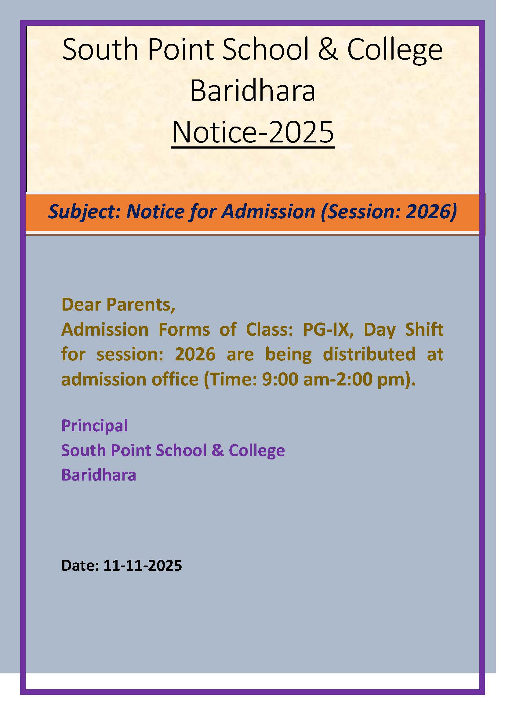 Notice for Admisstion Form Dristibution (Class: PG-IX, DS ; Session:-2026)