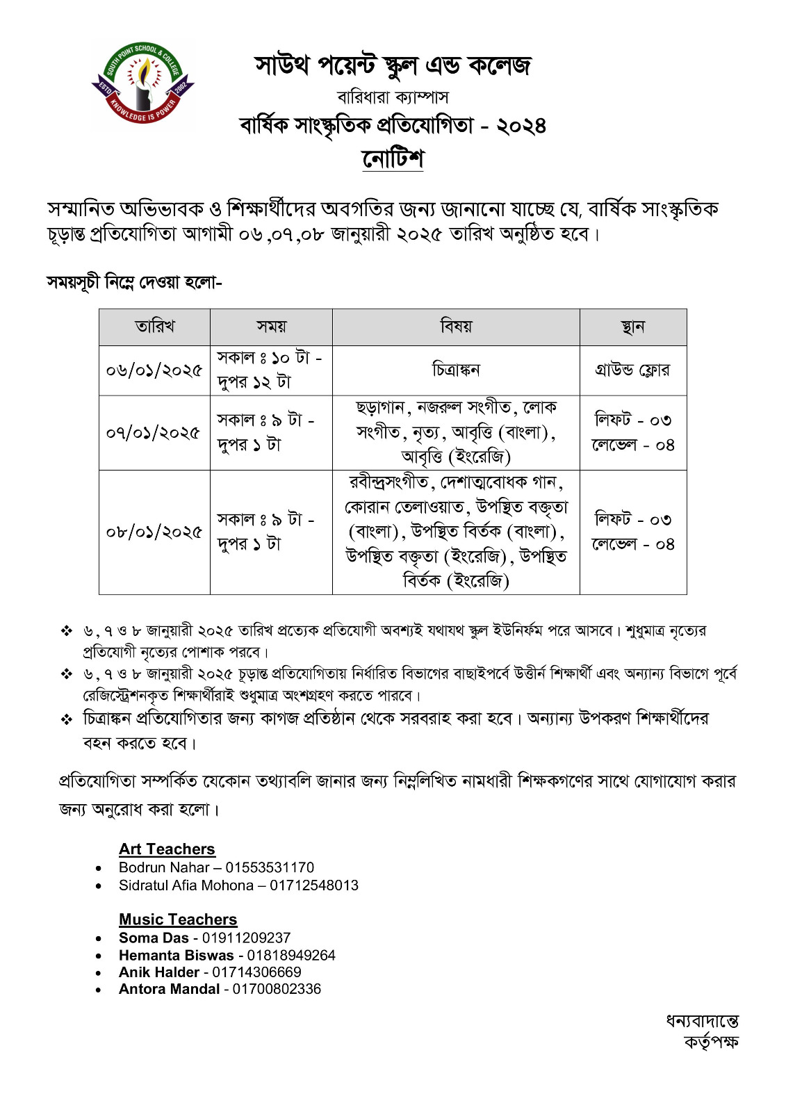 Notice for Annual Cultural Competition-2024