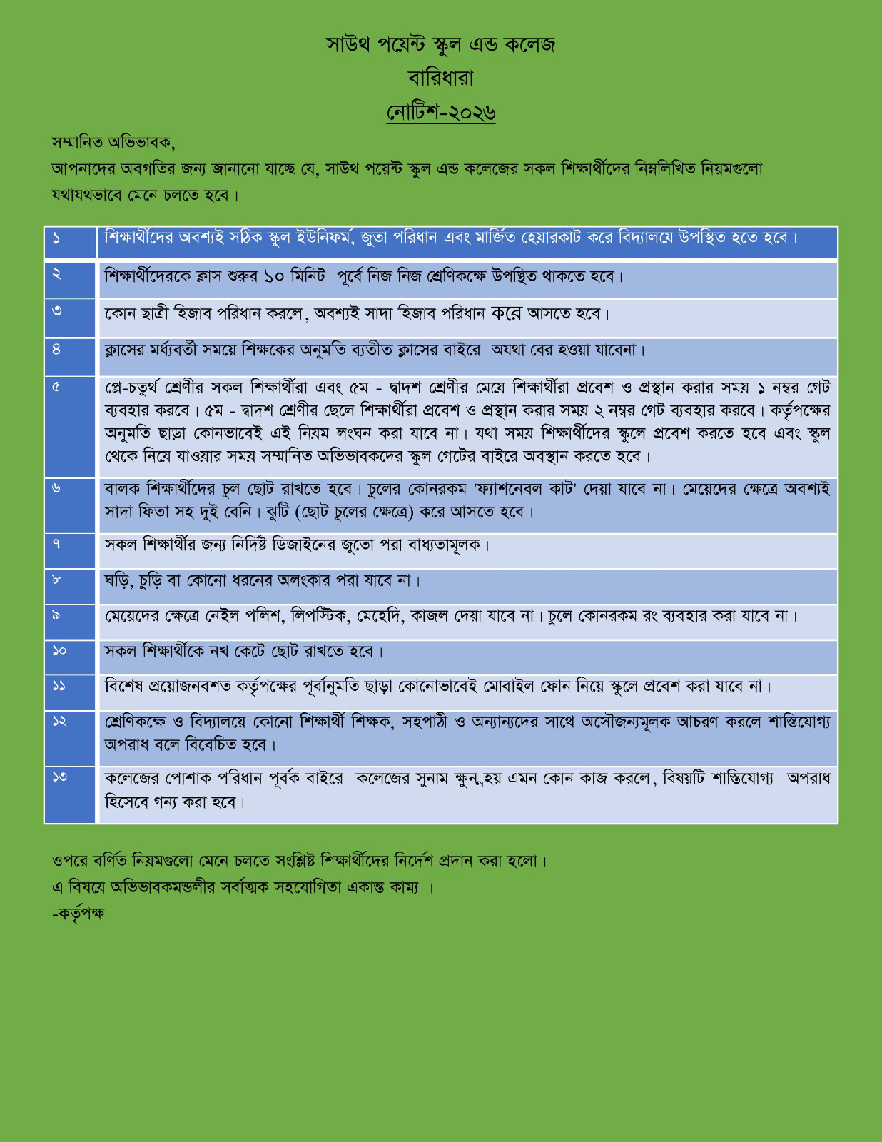 Notice for Holiday-2026